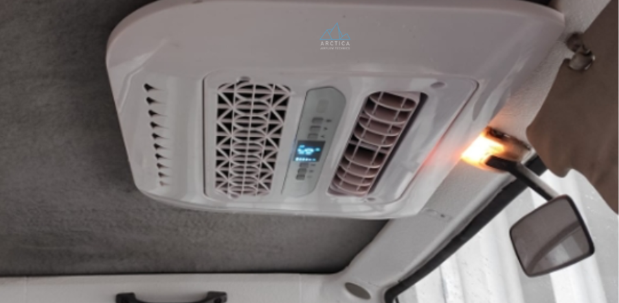 A powerful and dependable stationary cooling system, designed to deliver maximum comfort and a refreshing rest during idle periods. Engineered for efficiency, it features low energy consumption for extended use, even while stationary. Advanced acoustic materials reduce weight and vibrations, ensuring a quieter, more restful environment inside the cabin.
